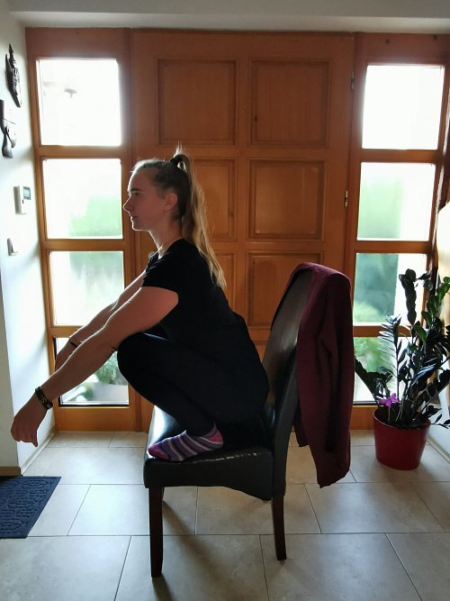 Aj pri sedení vieme byť kreatívni. Stačí si namiesto klasického sedenia napríklad čupnúť do pozície prospešného hlbokého drepu.