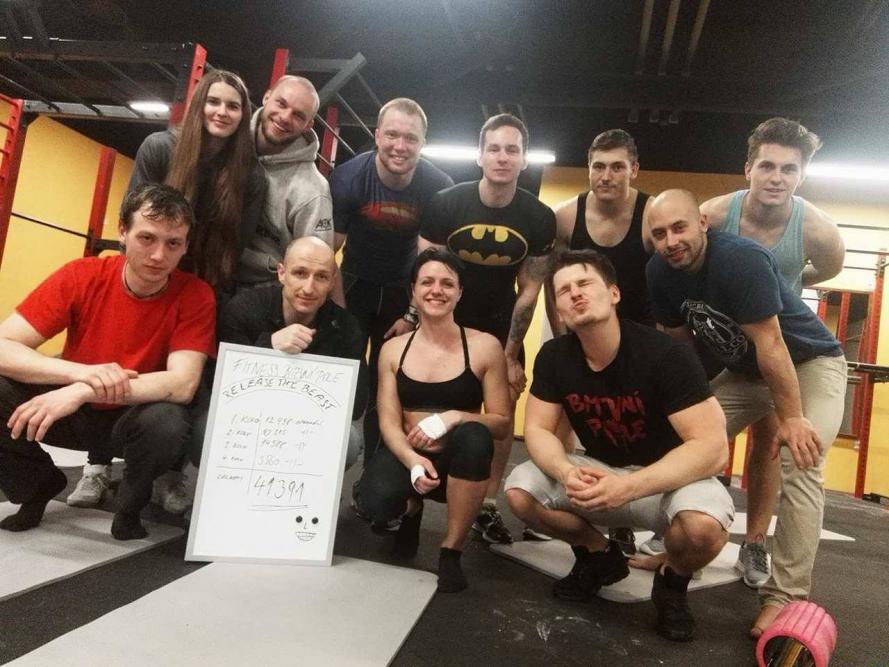 Blázni, šílenci? Ano. Ale hlavně nadšenci. Pátek večer, to je zábava, pro většinu lidí spojená s kalením, kde teče alkohol proudem. Tady tekl pot a někde i krev. Dlaně nevydržely. Na noční tréninkovou šichtu do Fitness Bitevní pole vyrazilo téměř pětadvacet workouterů, kteří se rozhodli dát si jednu noční cvičící směnu. Čtyři základní cviky - shyby, dipy, kliky a dřepy. Vše s vlastní vahou. Osmihodinová dřina, kde mělo být na konci co nejvíce opakování. Nakonec jich padlo 41 421! (Na fotografii je trochu jiné číslo, po přepočítání byl výsledek lehce upraven. Čísla počítal korejský telefon :-).
