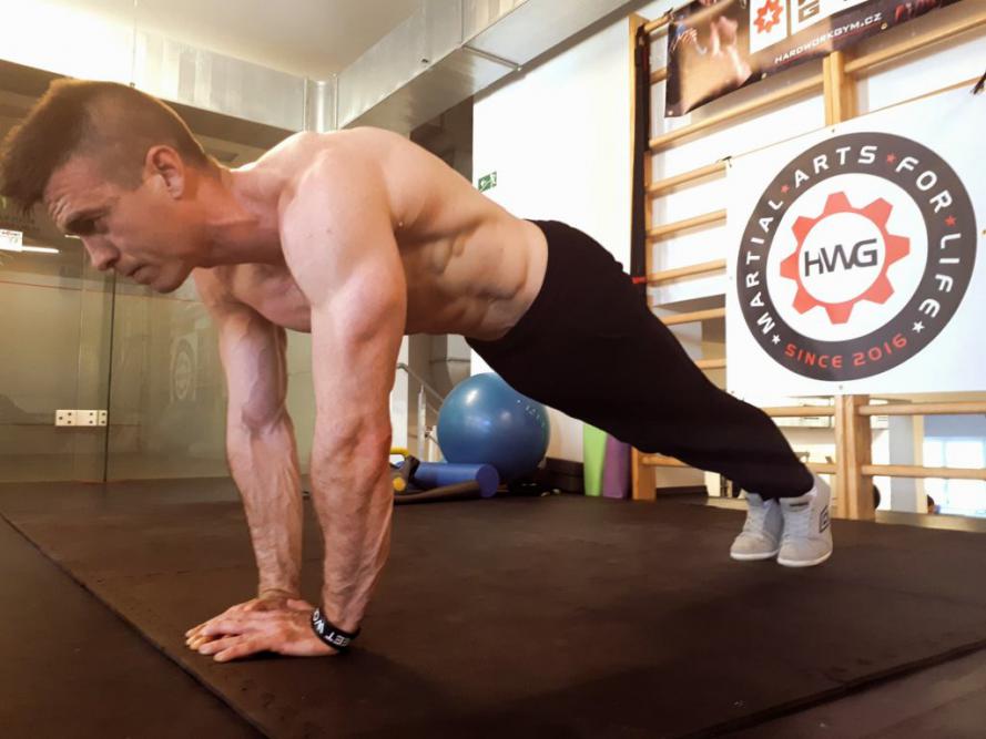 Nyní udělám 20 shybů, kliků okolo 80ti, diamantu 50 a dřepů za 90sekund 102. Ještě dipy, tam jsem okolo 50ti a vše čistý styl. Co se statiky týče, tak tu zapojuji jen jako doplněk na sílu. A to především ve Sportovním centru HWG PETA TÁBOR, kde trávím nejvíce tréninků.