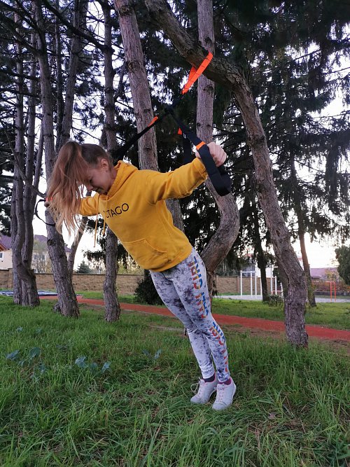 TRX nám umožňuje odcvičiť ako ťahovú, tak aj tlakovú silu. Kľuky patria k najzákladnejším cvičeniam v kalistenike. Foto – zdroj: Veronika Greinerová